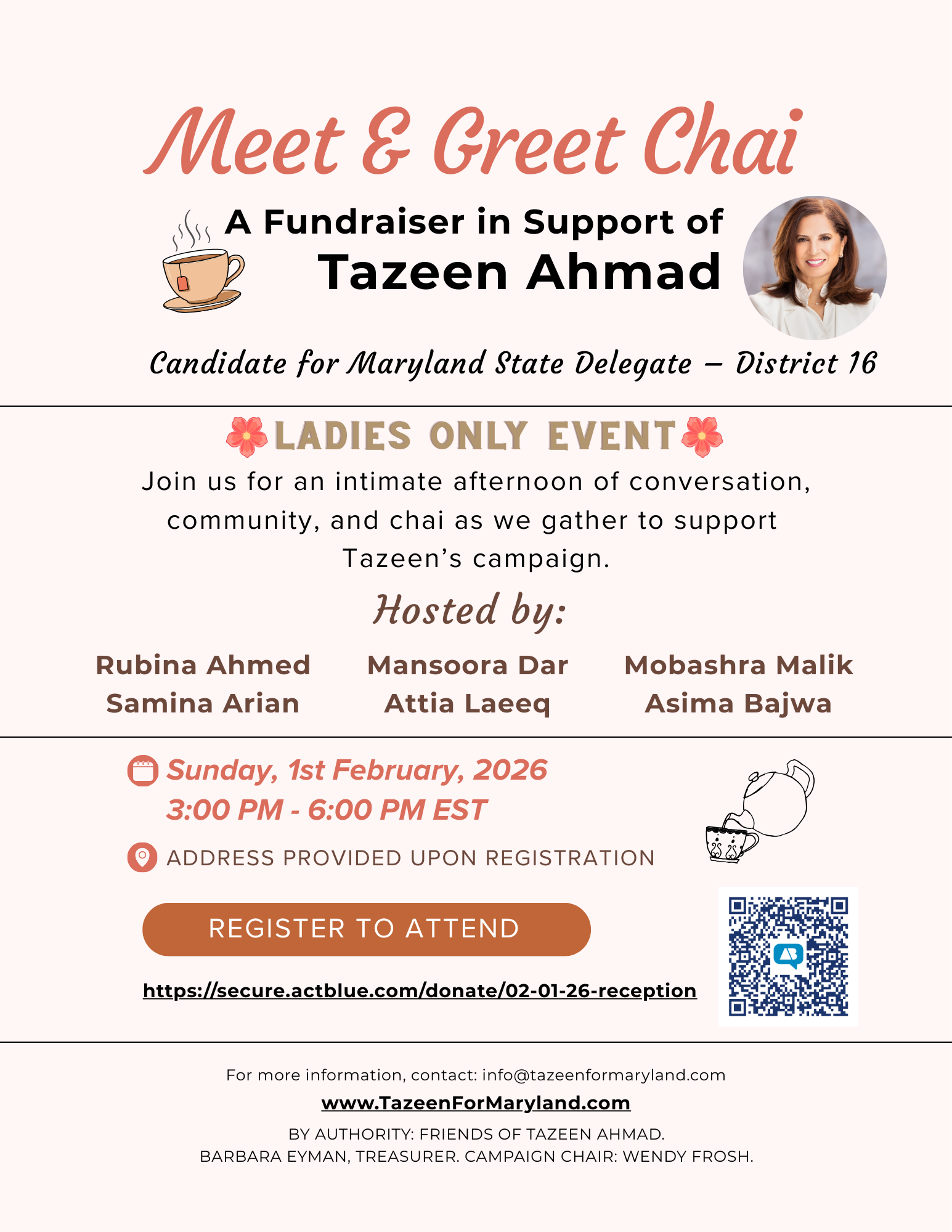 Fundraiser in Support of Tazeen Ahmad for Delegate – District 16