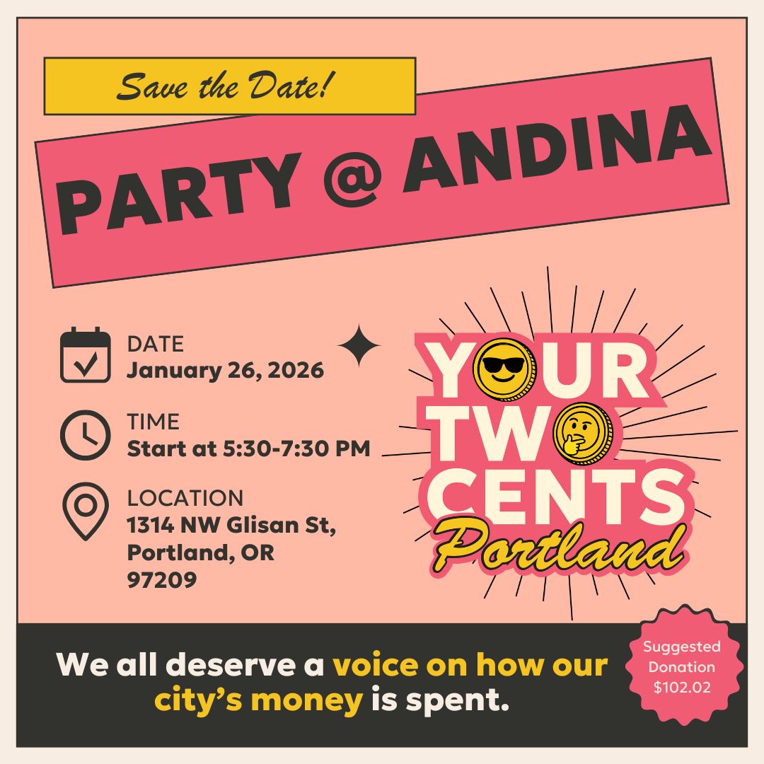 Kick off 2026 with a festive evening supporting Your 2 Cents PDX at Andina in The Pearl!