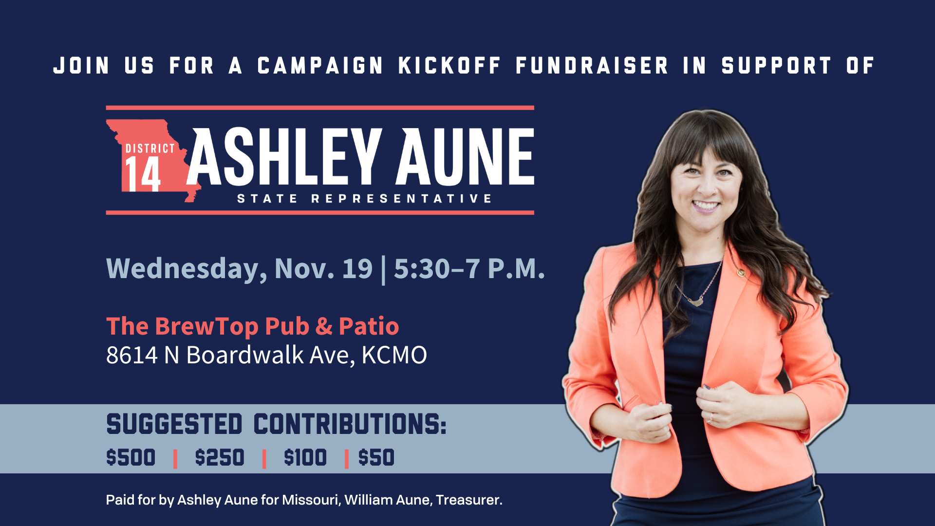 Checks can be made payable to Ashley Aune for Missouri, PO Box 901995, KCMO 64190