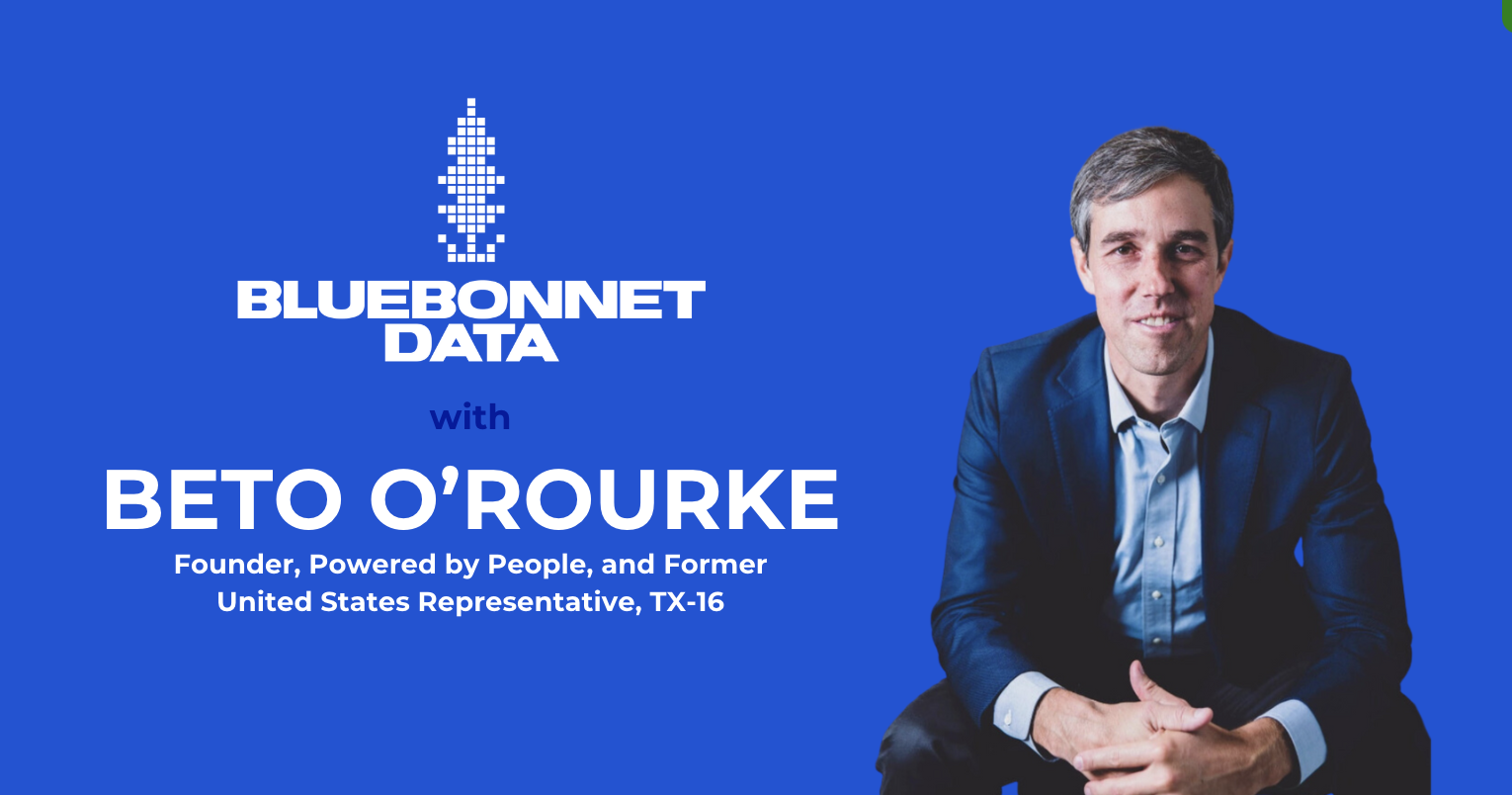 Beto O’Rourke and Bluebonnet Data Co-Founder Nathán Goldberg will host a conversation about the 2024 political landscape, what’s at stake next November, and why data and technology are critical to running a modern campaign and securing progressive victories at every level of the ballot.