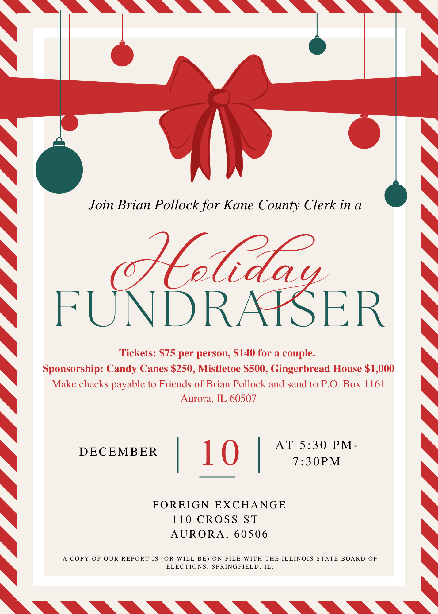 Join us for a holiday fundraiser to support Brian for Kane County Clerk!