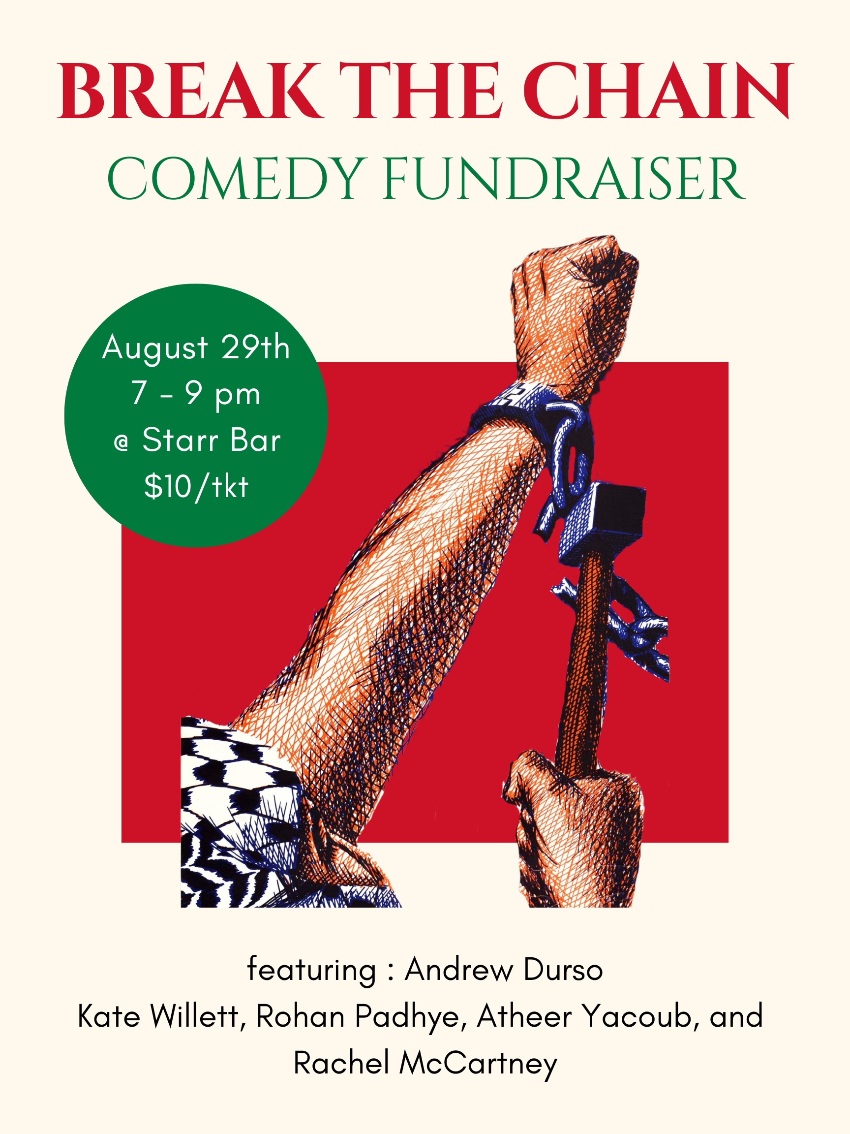 Join us for a night of laughter and solidarity at our Break the Chain - Comedy Fundraiser! We're bringing together a lineup of brilliant comedians for an evening of humor and community, all in support of an arms embargo in the NY and NJ area. Every ticket helps raise funds for the Break the Chain campaign so come out, enjoy the show, and stand up for justice through joy!
