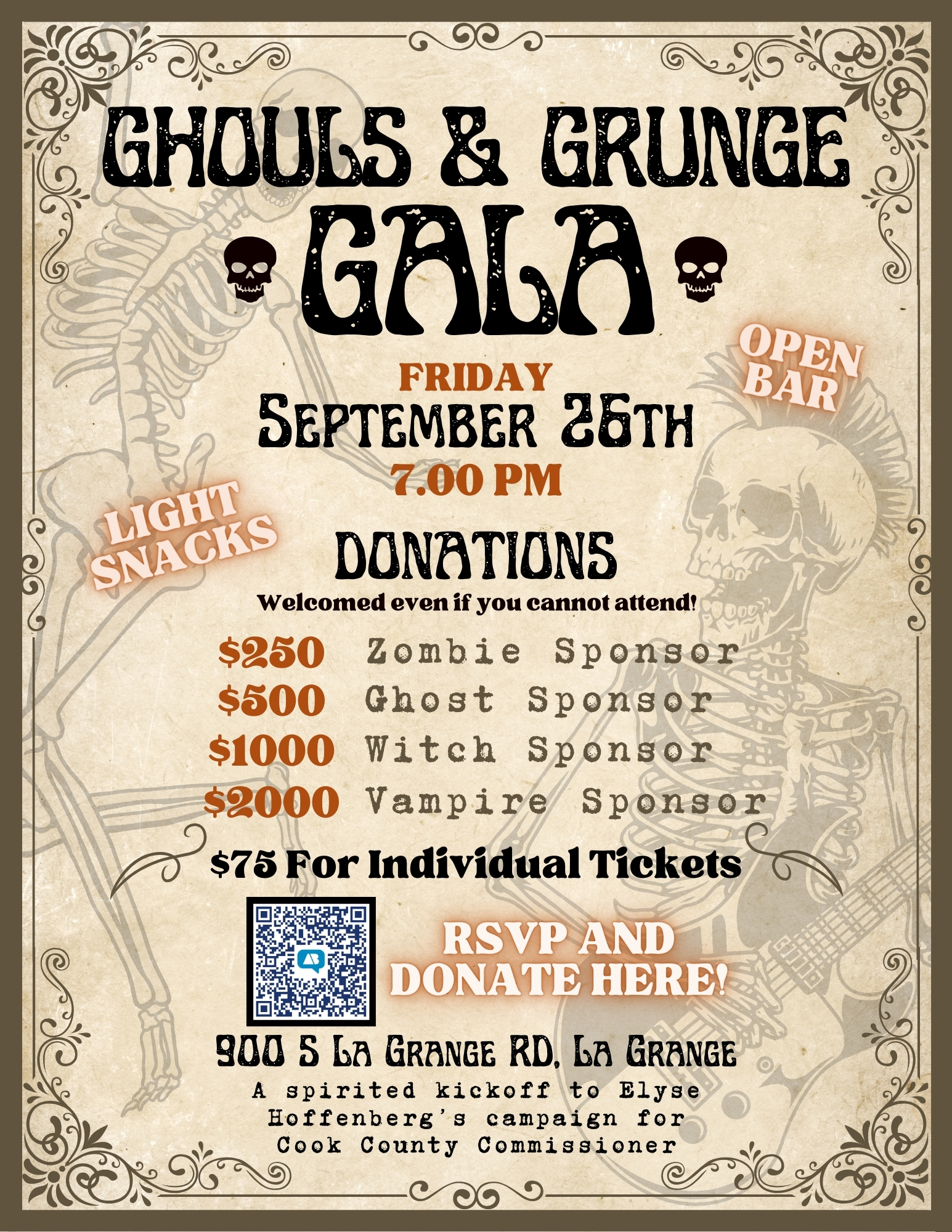 Join Elyse Hoffenberg for her spirted campaign kickoff on Friday, September 26, at the American Legion Post 1941, 900 S. La Grange Rd, La Grange. Doors open at 7 p.m. Enjoy spooky hors d’oeuvres, an open bar, and plenty of fun as Elyse launches her bid for the 17th District of Cook County.