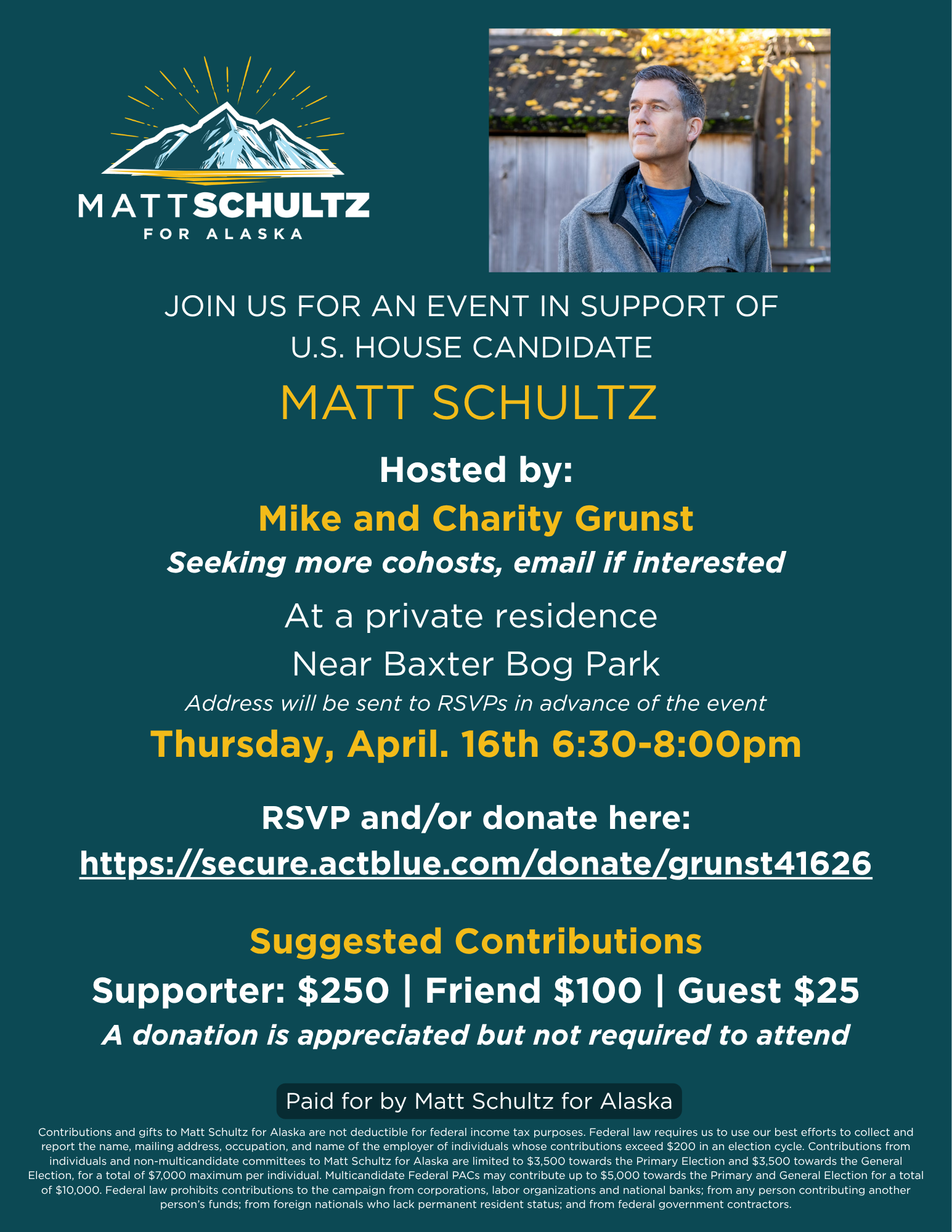 You can bring a check to the event if you wish as well. Please write it to "Matt Schultz for Alaska"