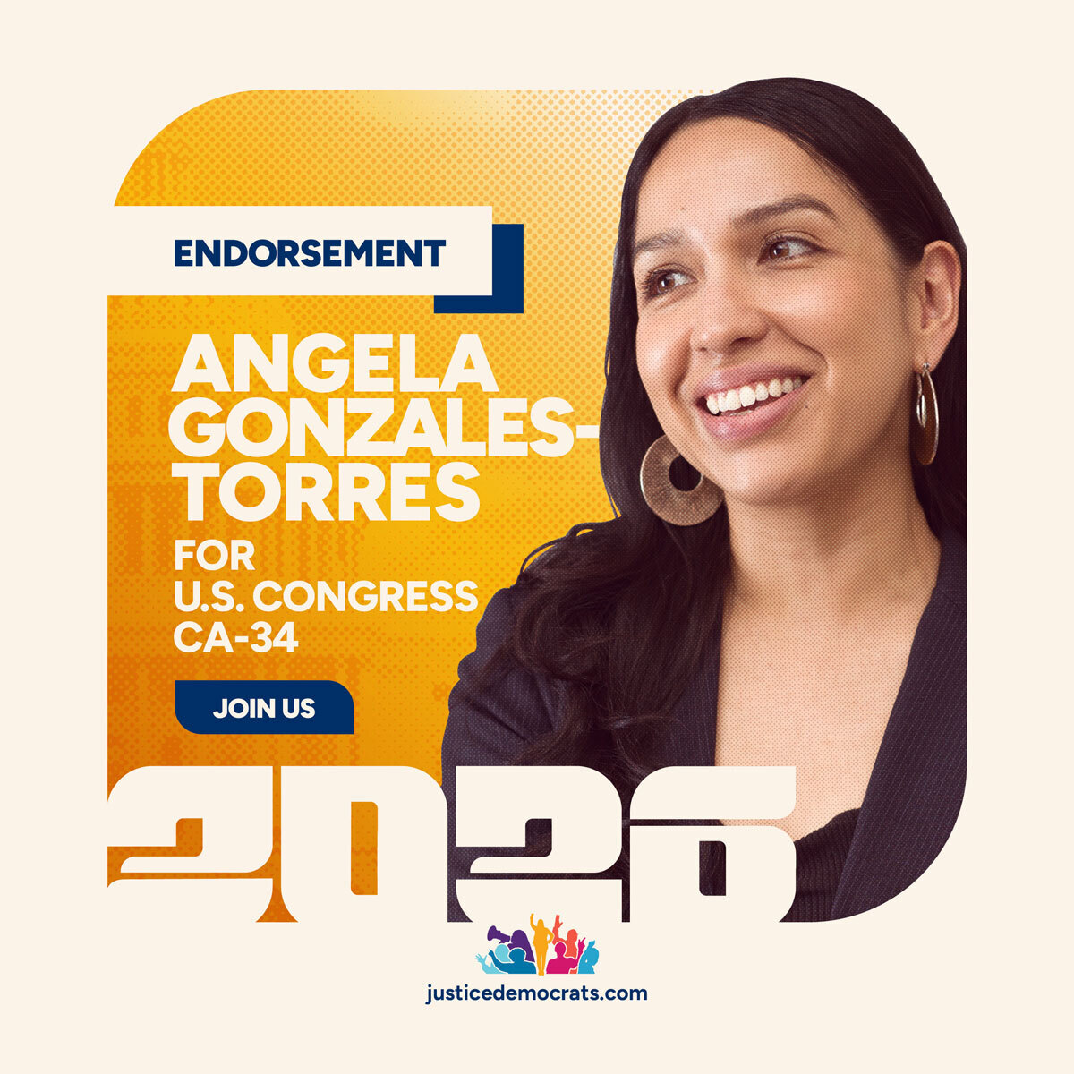 Justice Democrats is proud to endorse Angela Gonzales-Torres for Congress in California’s 34th district — the heart of Los Angeles. Angela is a working-class education advocate and community leader running to unseat Rep. Jimmy Gomez, who has taken money from corporate PACs like AIPAC while leaving his community behind. Every dollar you give will go directly to launching Angela’s grassroots campaign and building the movement to defeat the Democratic establishment.