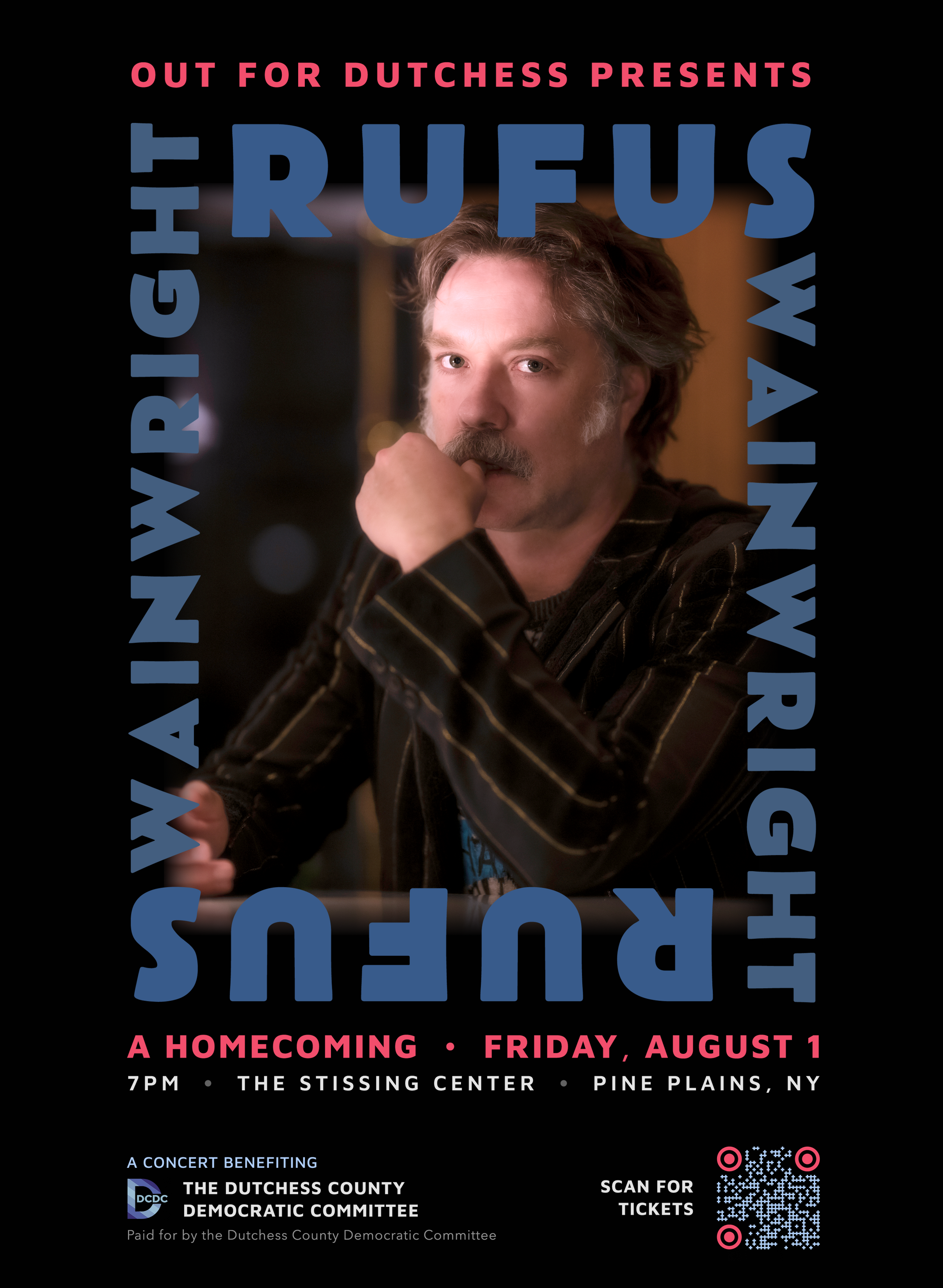 Rufus Wainwright is returning to Dutchess for a very special concert benefitting the Dutchess Dems in a critical election year for our county. Join us for an incredible evening and help flip Dutchess blue!