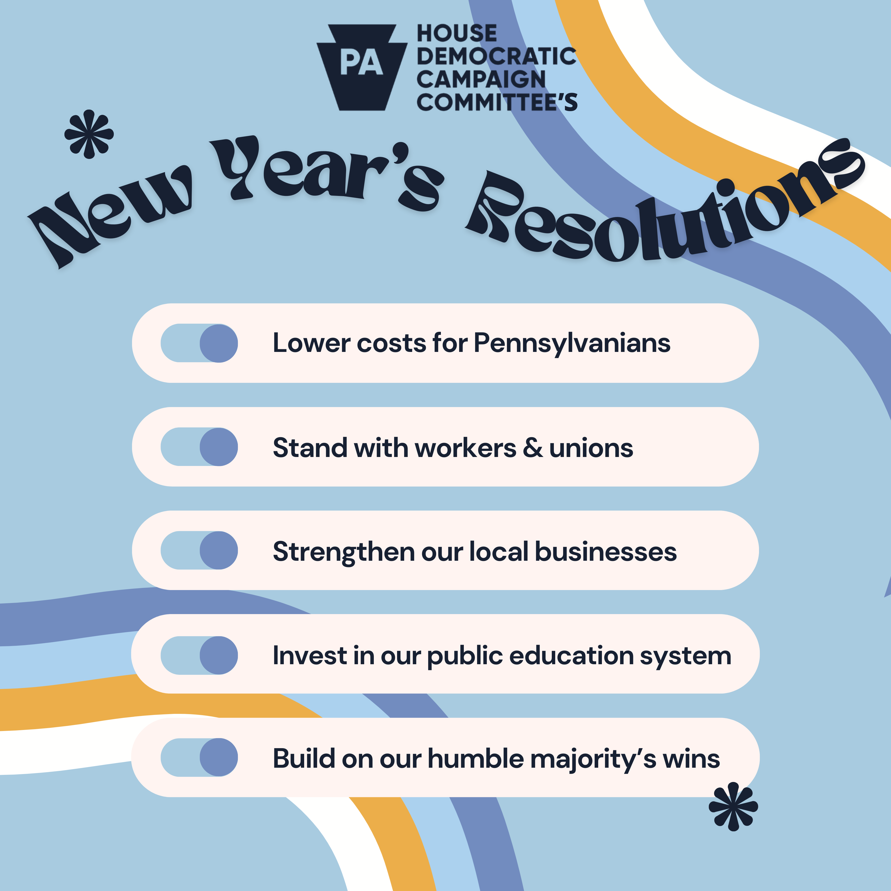 The PA House Dems have a brand new set of resolutions for 2025 and we’re ready to start crossing them off our list. But we could use your help to stay on track throughout the year.