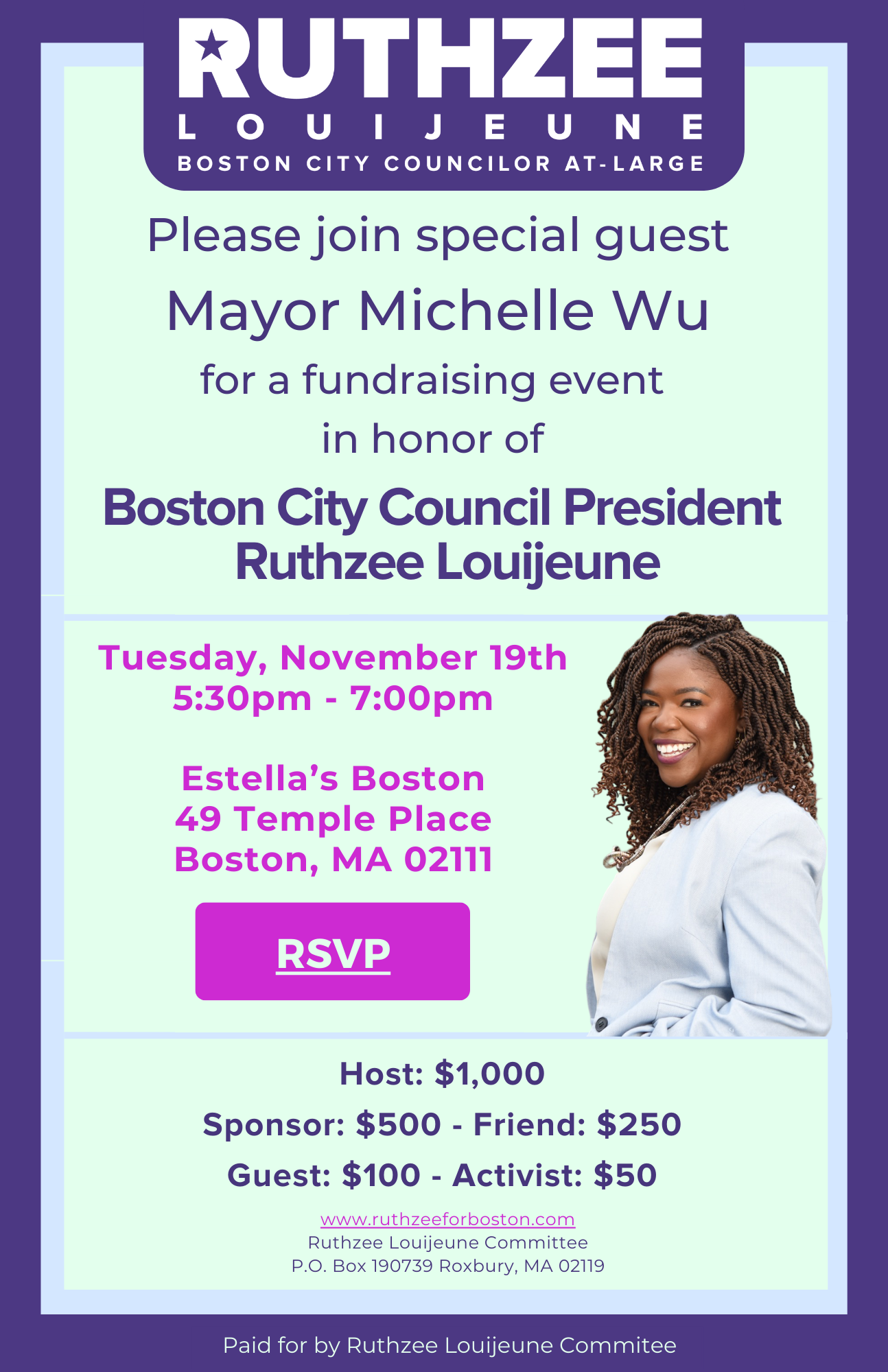 Join Mayor Wu for a fundraising reception in honor of Ruthzee!