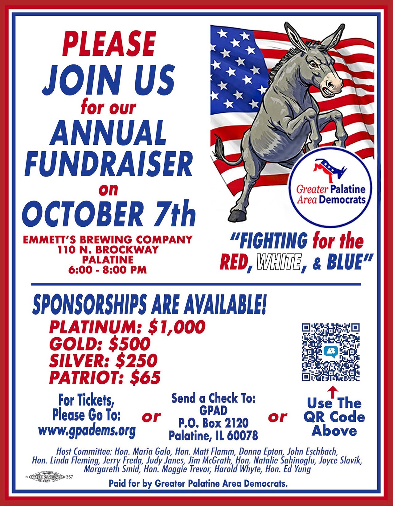 Greater Palatine Area Democrats Annual Fundraiser: 2025 Fighting for the Red, White, and BLUE!!