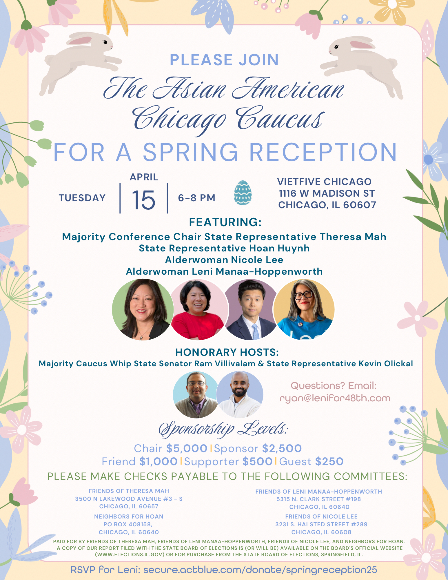 Make checks payable to "Friends of Leni Manaa-Hoppenworth" and bring them to the event or mail to: