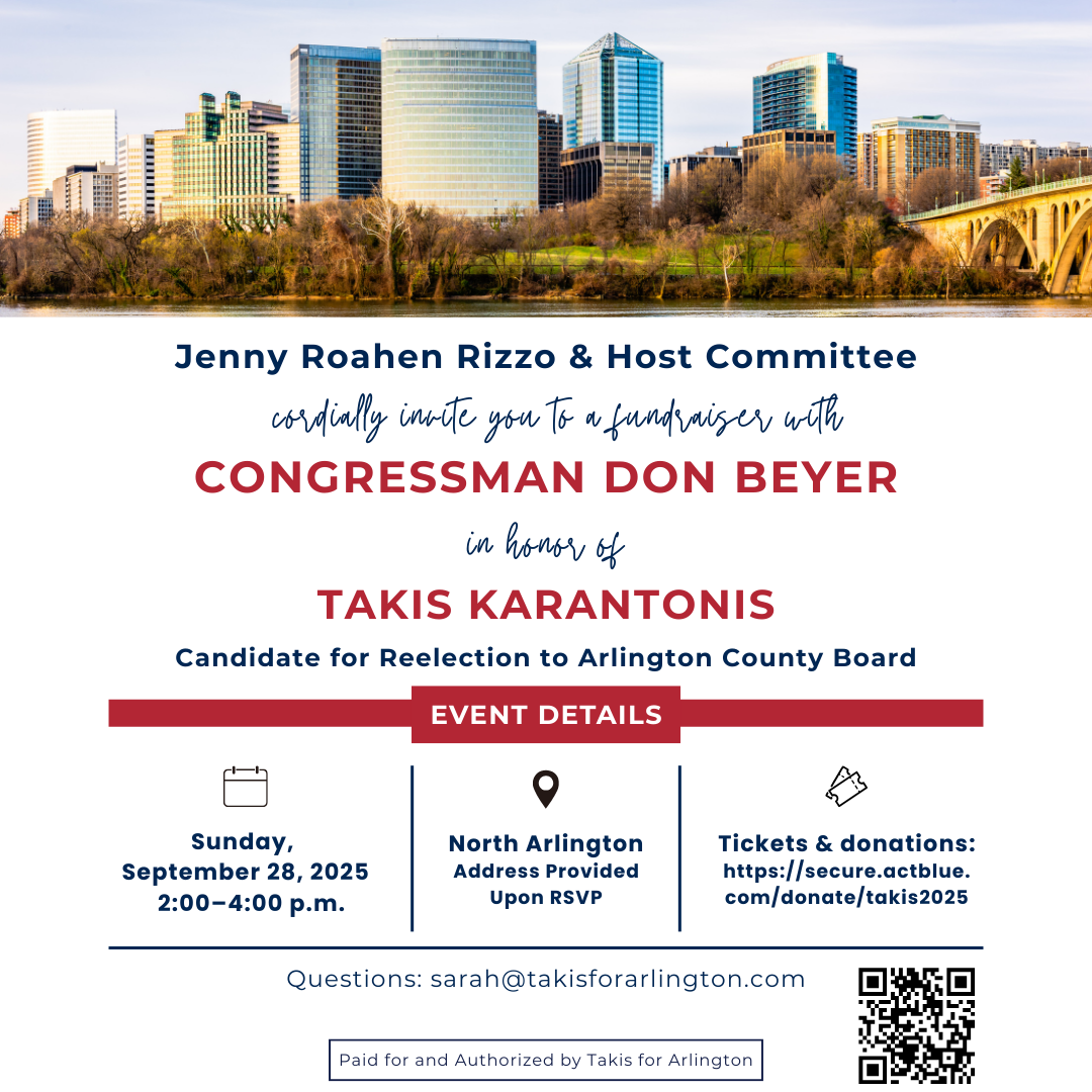 Join us for a fundraiser for Takis Karantonis’s campaign for Arlington County Board!