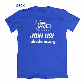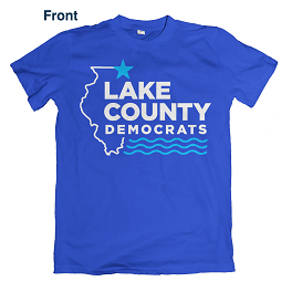 Show your Democratic spirit with an official Illinois Lake County Democrats t-shirt. A minimum contribution of $18 (our cost, including shipping and handling) is requested, though more is welcome and encouraged.