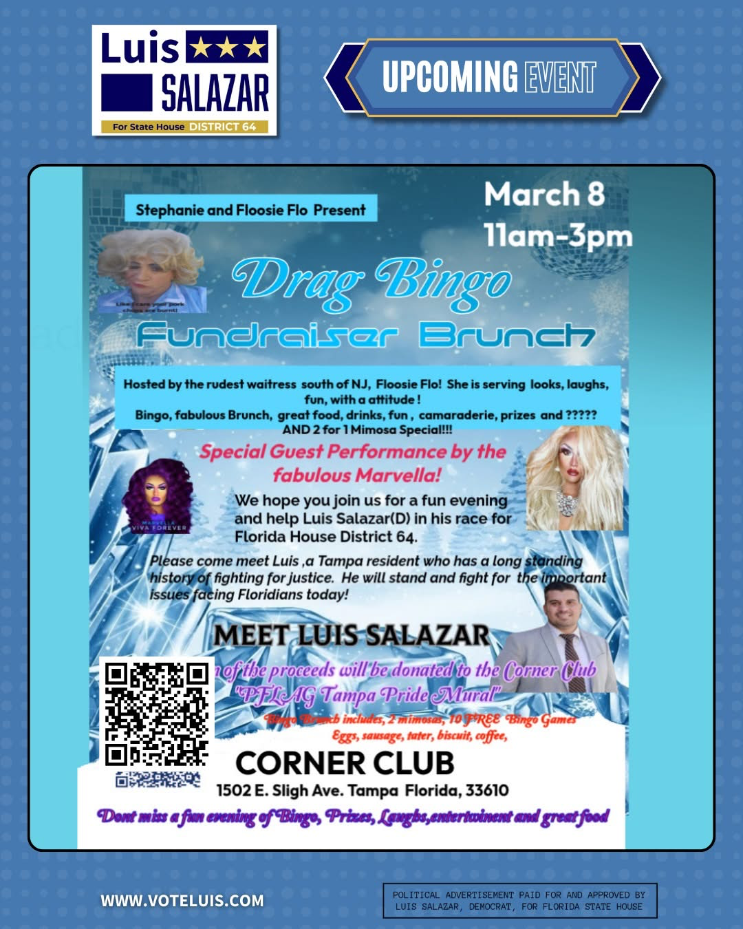 Brunch, Free Bingo, and door prizes. we will also have performances from entertainers.