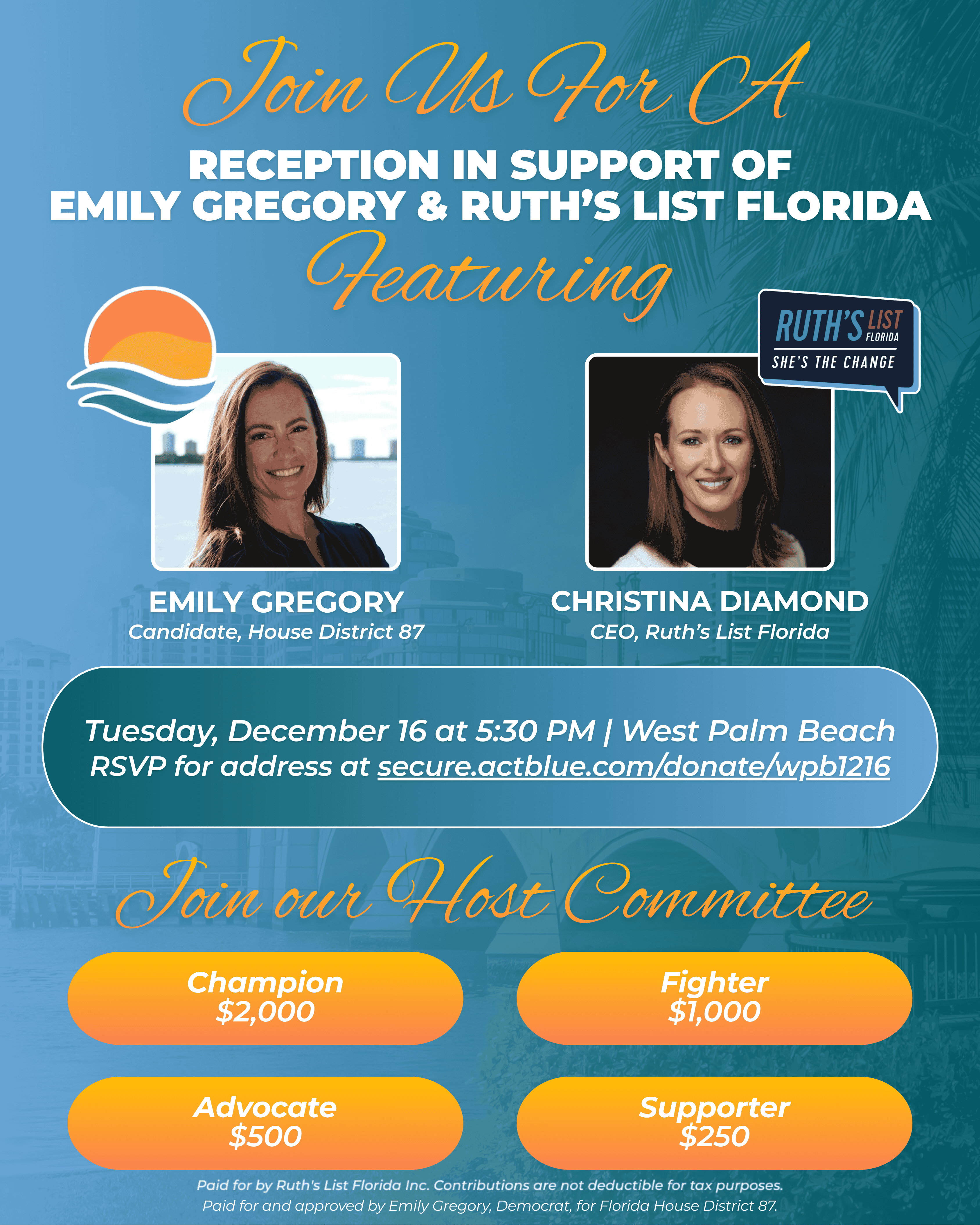 Paid for by Ruth's List Florida, Inc. Donations to Ruth's List Florida, Inc. are not deductible for tax purposes.